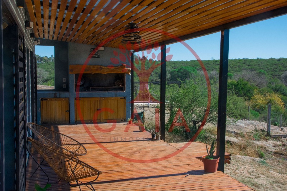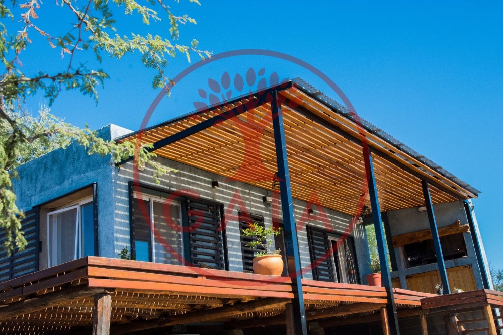 Su techo, con espuma industrial aislante y terminaciones en chapa de fibra de vidrio, garantiza una temperatura ideal durante todo el año y una durabilidad excepcional. Desde su galería exterior de madera con asador, el paisaje de las sierras se convierte en un cuadro vivo que acompaña cada desayuno o atardecer.