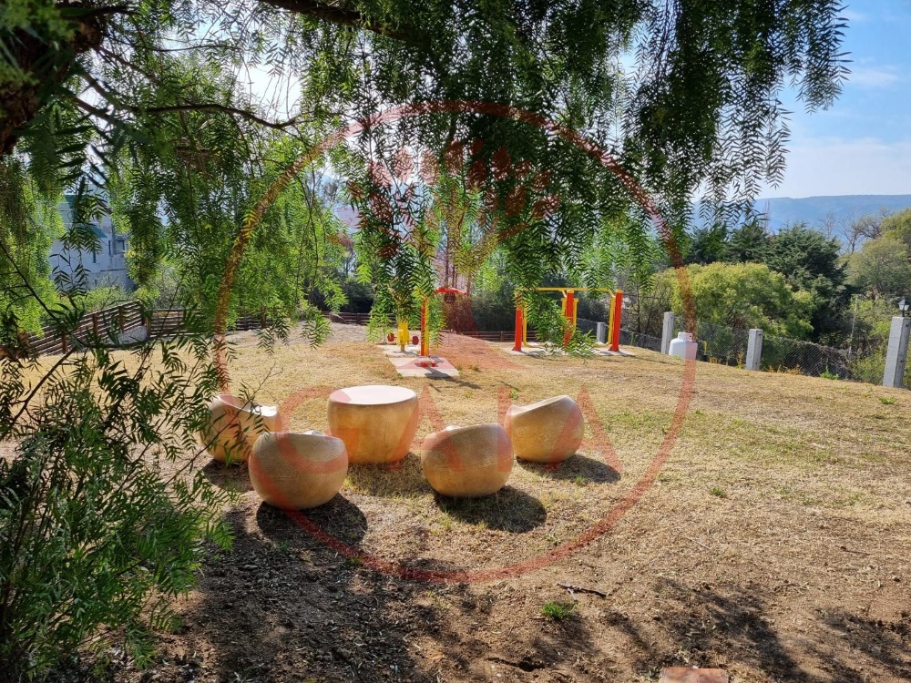 Cada cabaña cuenta con alarma. En su parque también se encuentran juegos y asientos dispersados en material.