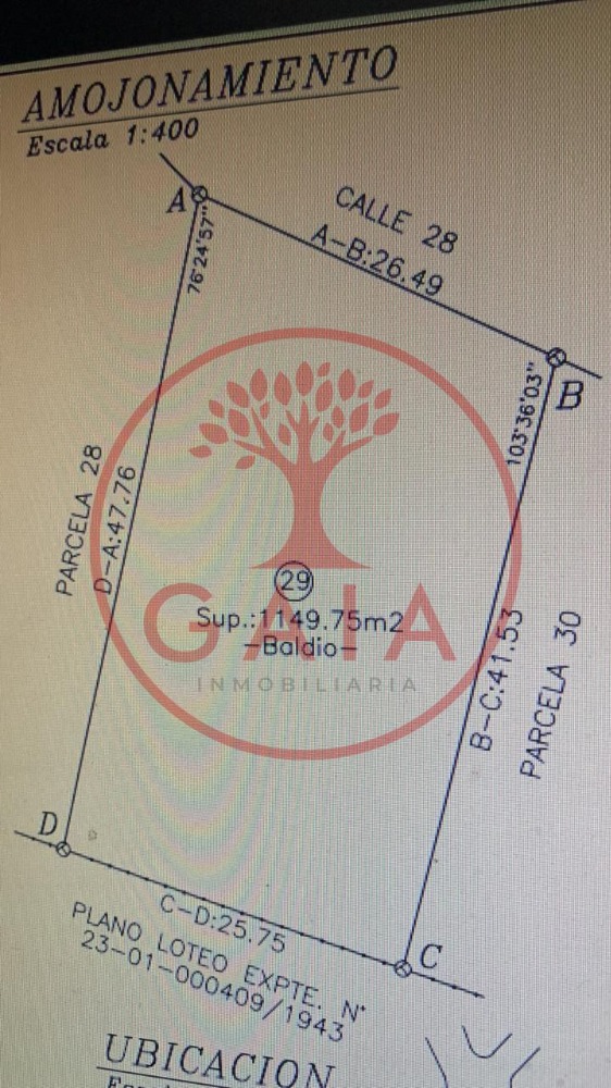SUPERFICIE : 1149,75 M2, ( 26,49 de fte x 45 de fdo).